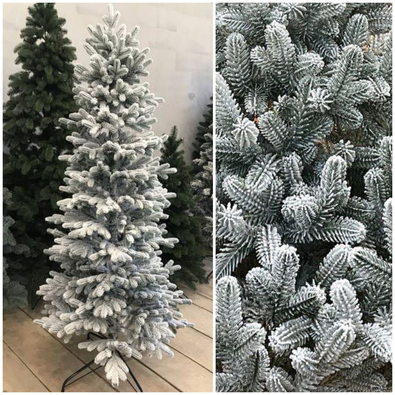 Звертаємо вашу увагу на те, що при розпаковуванні засніжених ялинок може залишатися невелика кількість снігу в коробці – це надлишки, які не прикріпилися до гілок при виготовленні та обсипалися під час транспортування.